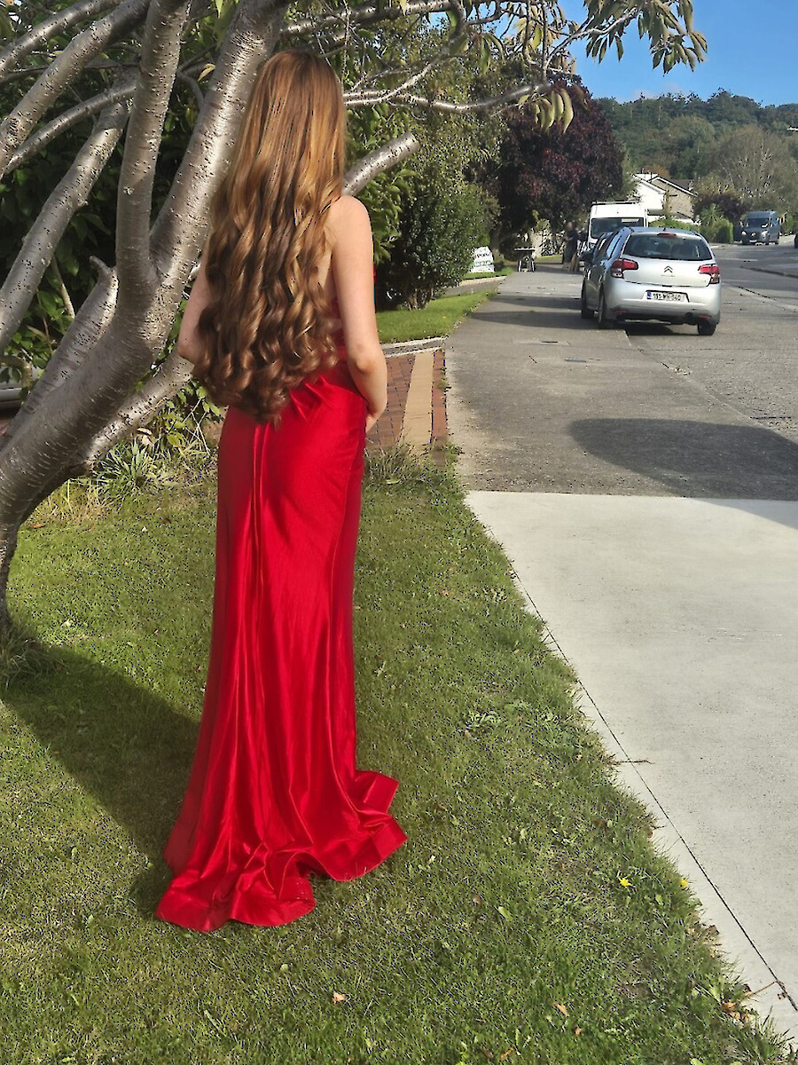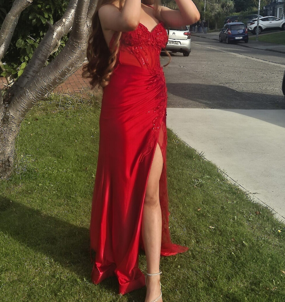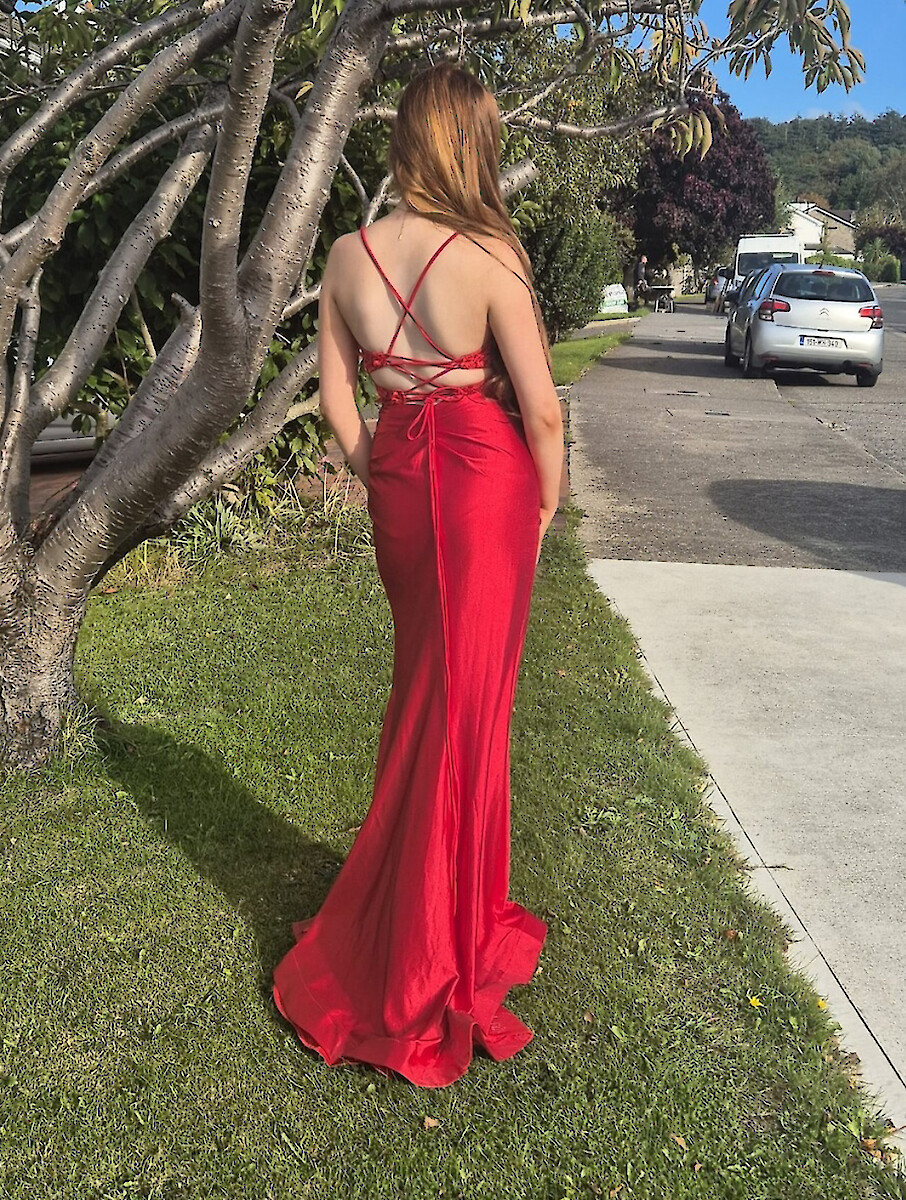 Red satin Dani’s showroom dress Size xxs, uk size 6. Worn once, never altered. Bought for €585 selling for €200 or best offer. Located in South Dublin.