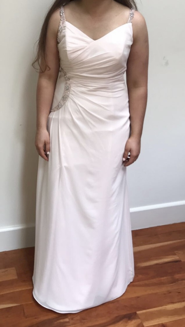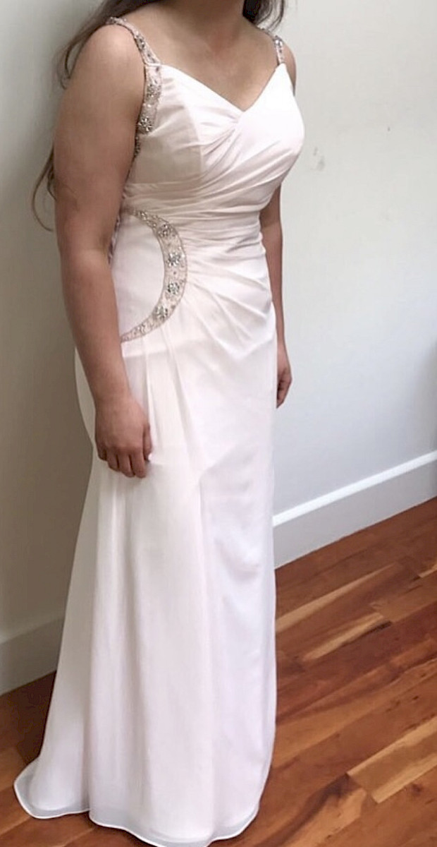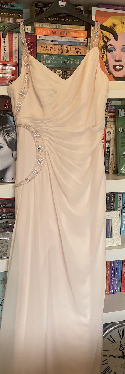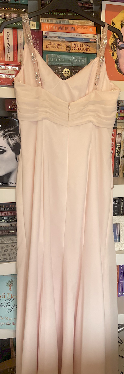This is a gorgeous blush pink chiffon dress with sequin details worn once and immediately dry cleaned. It was bought in Marian Gale Donnybrook RRP €600, it is in perfect condition and would be ideal as a debs or bridesmaids dress. It would fit a size 12/14.