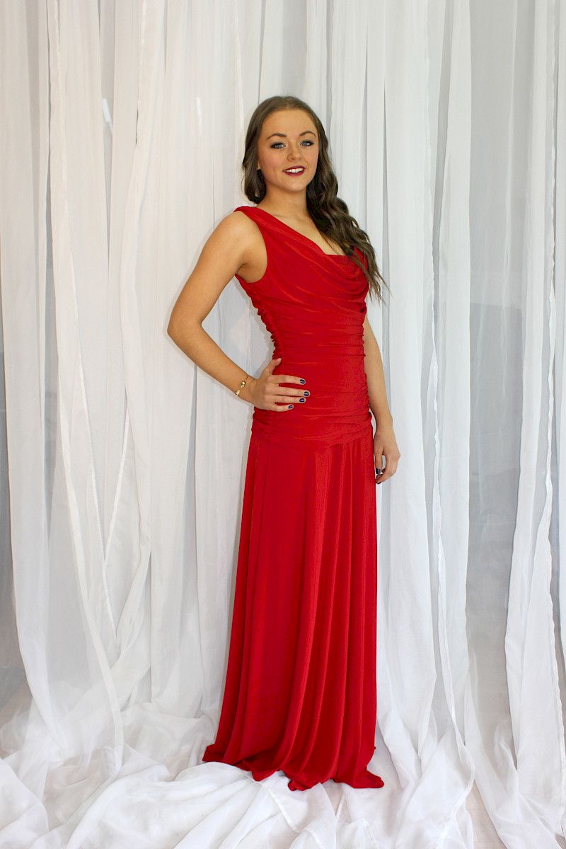 Beautiful fitted red dress.
