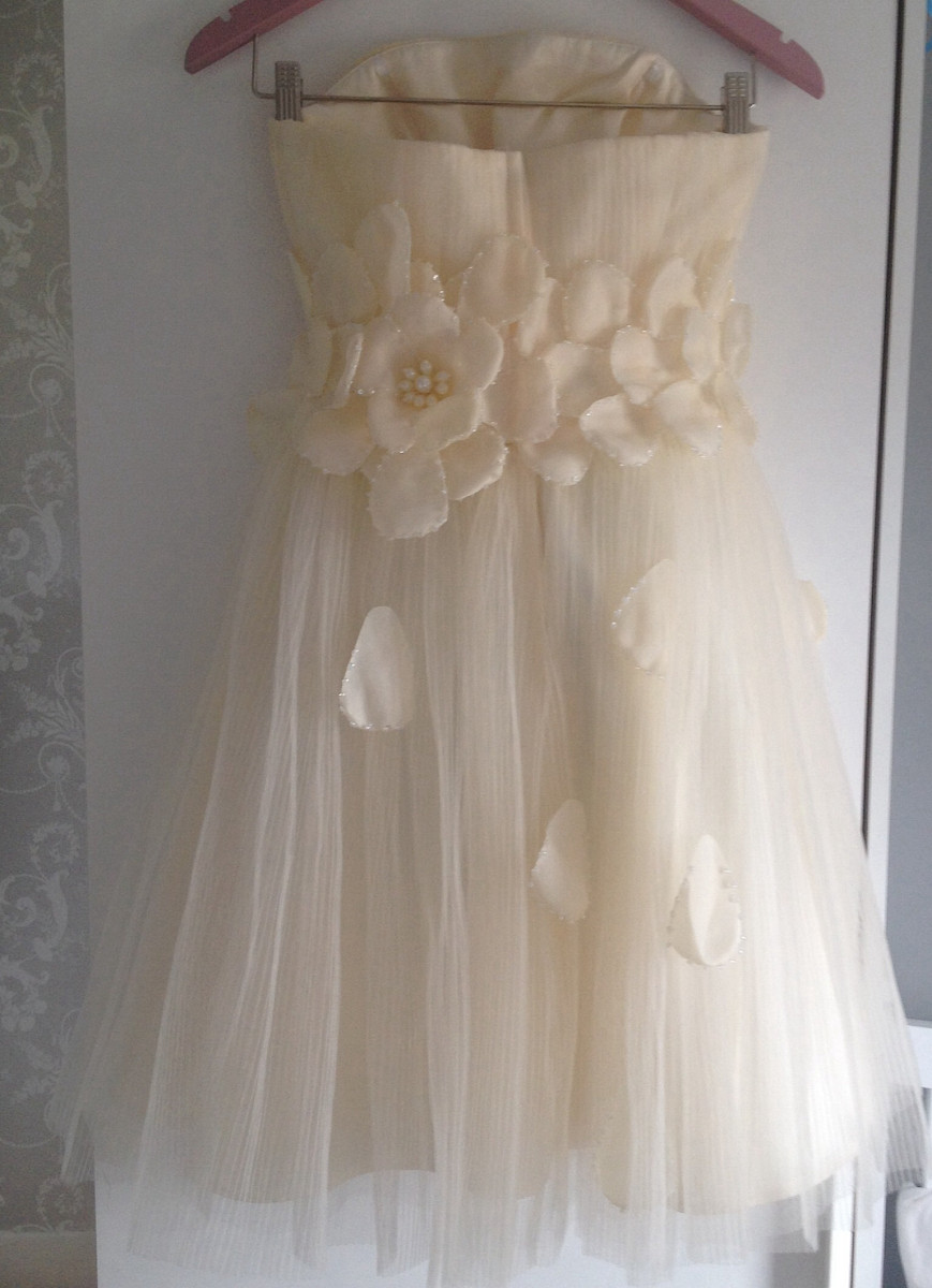 A one off vintage 50s style short cream dress bought from a boutique in Dublin's Grafton St. "Why fit in when you were born to stand out" kinda dress, as I was the only person at my debs with a shorter length dress it got a lot of attention as I styled it with a bold red lip and old fashioned pearl accessories. A great look for an alternative kinda girl ;). With built in padding for chest area and the strapless style it gives you a great shape with a full tulle small pleated skirt , satin petal and pearl detailing throughout the dress. Very girly and elegant to wear. Worn only for the one night in perfect condition, will be freshly dry cleaned and steamed before purchasing. Price is negotiable. Can be delivered personally or collected living in the Dublin area available for viewing or to try for prior to purchase. X